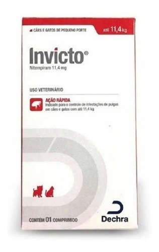 Invicto é um antipulgas a base de Nitempiram, que possui rápida absorção e ação no organismo, atingindo as máximas concentrações sanguíneas a partir de 15 minutos, proporcionando um rápido alívio para o seu pet.