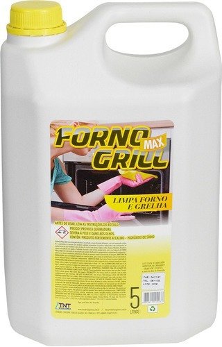 FORNO GRILL MAX é um detergente Alcalino Concentrado, possui alto poder de limpeza pois sua composição confere-lhe a propriedade de remover com eficiência sujidades provenientes de gordura carbonizada e não carbonizadas em equipamentos de aço inoxidável e ferro da área de cocção como fornos, fogões, coifas, chapas e fritadeiras. Dissolve as sujeiras mais difíceis com rapidez e facilidade. Aumenta a vida útil dos equipamentos pois o uso frequente de FORNO GRILL MAX evita a formação de incrustações que acabam danificando os equipamentos e contaminando os alimentos.