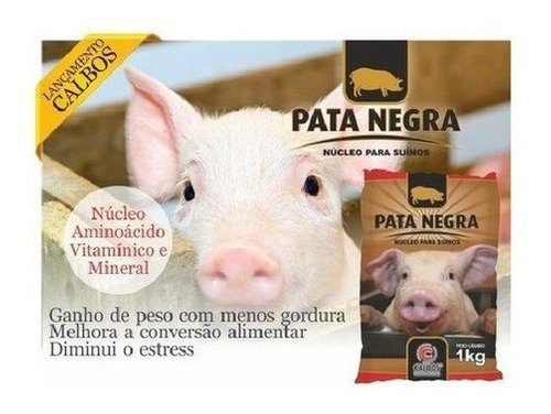 Leitões em crescimento, fêmeas em gestação e aleitamento, machos em reprodução: misturar 2 kg de PATA NEGRA em 100 kg de ração; animais em fase de acabamento e engorda: misturar 1,5 kg de PATA NEGRA em 100 kg de ração.