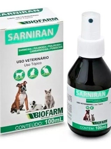 você pode aplicar no seu cão ou gato onde tem os sintomas que o SARNIRAN COMBATE e aplique com spray em areas peladas vermelhas deve aplicar uma dose diaria até o resultado final que é a cura do seu animalzinho ou exterminio