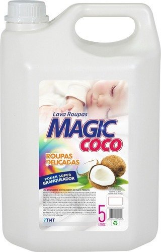 MAGIC COCO é um lava roupas revolucionário, moderno e eficiente desenvolvido para o melhor resultado na remoção de sujeiras de qualquer intensidade, manchas e encardidos, valorizando o branco, não desbotando roupas escuras e realçando as cores, protegendo principalmente os tecidos delicados, como roupas de bebês e roupas íntimas. Oferece mais benefícios pela praticidade de ser lava roupas líquido, por ser concentrado e mais econômico.