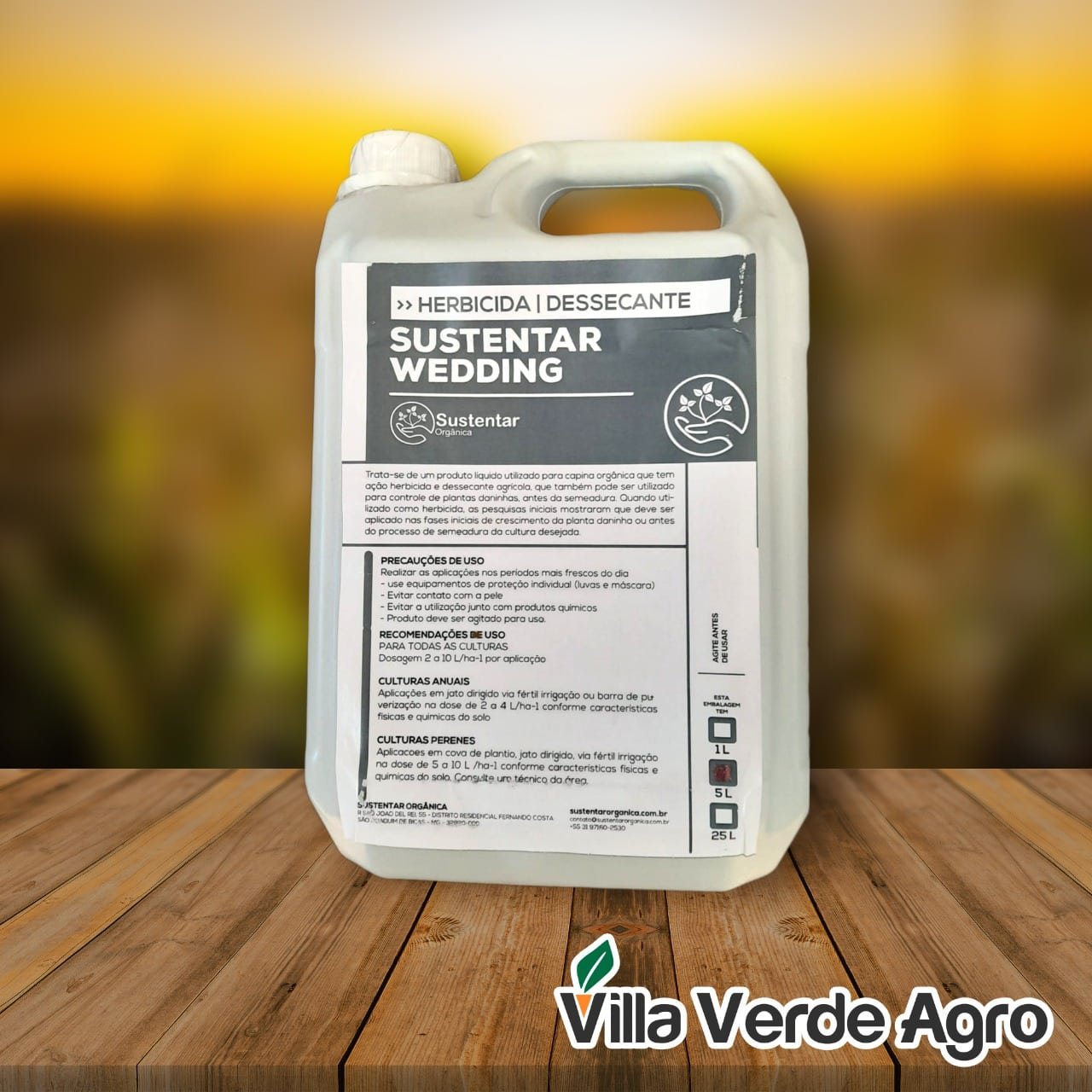 Sustentar Weeding é um produto líquido utilizado para capina orgânica que tem ação herbicida e dessecante agrícola, que também pode ser utilizado para controle de plantas daninhas, antes da semeadura. Quando utilizado como herbicida, as pesquisas iniciais mostraram que deve ser aplicado nas fases iniciais de crescimento da planta daninha ou antes do processo de semeadura da cultura desejada.